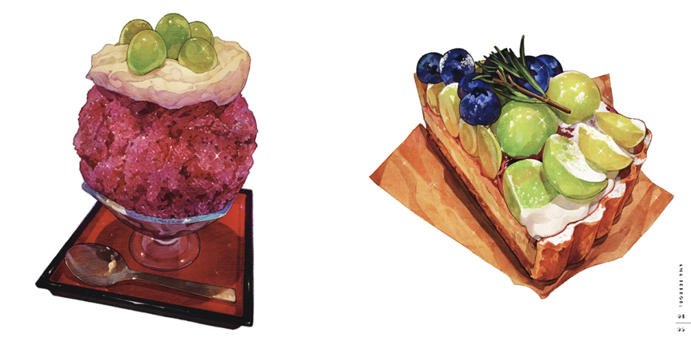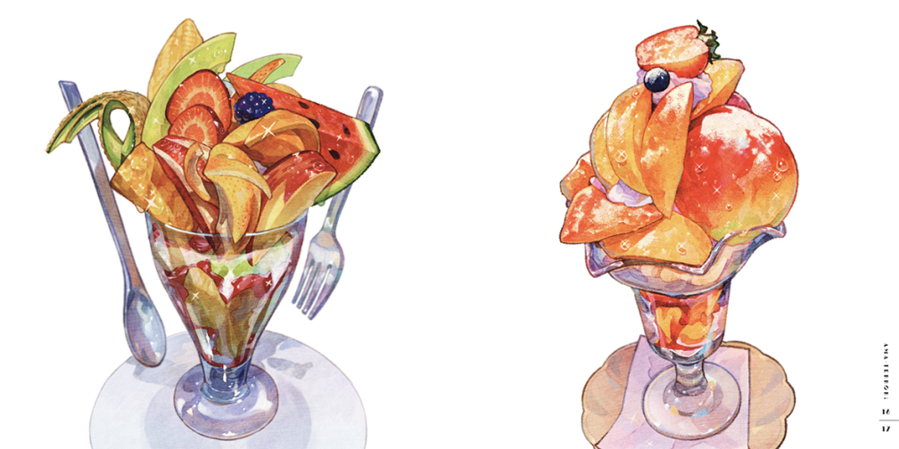 令人興奮的西式點心、溫柔的紅豆和果子、果汁豐富的水果類和閃閃發光的奶油蘇打,豪華收錄了175件絕品插圖。